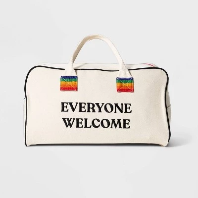 - Comes with a white carrying bag with the text “Everyone Welcome” and Pride flag accents