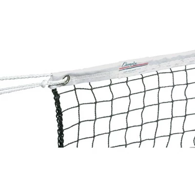 Champion Badminton Net measuring 22 x 2-1/2 feet features, durable 1-1/2 inch nylon-reinforced vinyl headband and braided rope. Polyethylene net is 6-ply twisted with 3/4 inch square mesh.