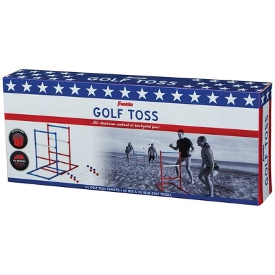 Bring this red, white and blue themed golf toss set by Franklin Sports to your next beach trip, picnic or backyard BBQ! The set includes (2) golf toss targets and (6) authentic style golf tosses (3 red and 3 blue). The set requires no tools to set up, allowing for more playing time! The game also features a durable all-weather PVC frame. The base of the golf toss targets is weighted giving you versatility in your choice of playing surface. Create memories with your family and friends that will last a lifetime, all while having hours of fun. Pick up your set today and join in on the fun!