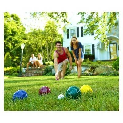 The Franklin Sports 100mm Bocce ball set is a classic outdoor game that will bring hours of fun for all ages. This four player set includes all you need for a day of fun: (6) all-weather 90mm resin balls and (1) 50mm pallino scoring jack. The balls include (2) red, (2) blue, (2) yellow and (2) green colors so you can differentiate your players. Easily transportable, this versatile set can be used on grass, sand, or any soft surface. A deluxe carry bag is included in this bocce ball set making it incredibly transportable and easy to store when not in use. Perfect for your next trip to the beach, backyard, an outing or your next party!