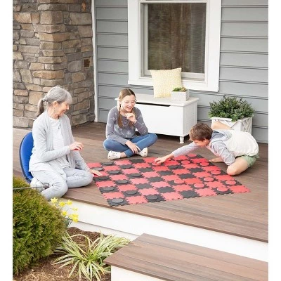 - Family-favorite multi-generational game of checkers designed for oversized indoor or outdoor play!