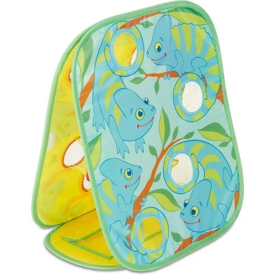 - 1 or 2 player bean bag toss game featuring the sneaky Camo Chameleon