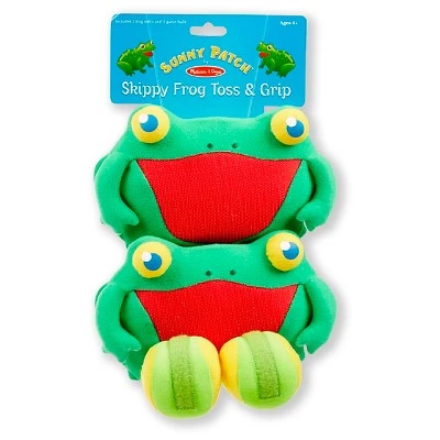 Young friends will have a ball with this amphibian twist on a classic backyard game. Set includes two soft balls and two smiling, self-stick fabric Skippy Frog catchers. This game can be played outdoors or inside, keeping kids four and older engaged and moving, and helping to develop gross motor skills, coordination, and interpersonal skills.