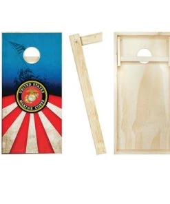 Skip’s Garage Marines Cornhole Board Set, Includes 2 Boards, 8 Bags + Optional Accessories