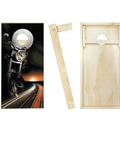Skip’s Garage Motorcycle Rider Cornhole Board Set, Includes 2 Boards, 8 Bags + Optional Accessories