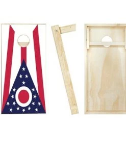 Skip’s Garage Ohio Flag Cornhole Board Set, Includes 2 Boards, 8 Bags + Optional Accessories