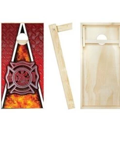 Skip’s Garage Fireman Cornhole Board Set, Includes 2 Boards, 8 Bags + Optional Accessories