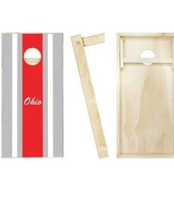 Skip’s Garage Ohio Stripe Cornhole Board Set, Includes 2 Boards, 8 Bags + Optional Accessories