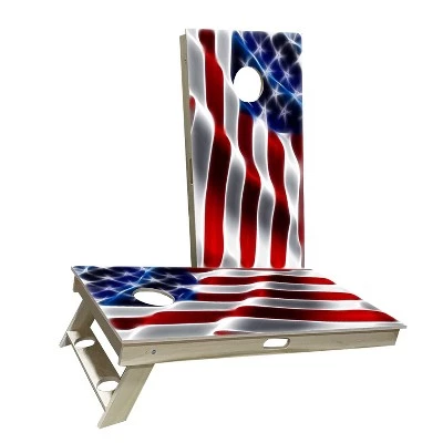 If you are looking to tailgate like a pro or spice up your next backyard party, our American USA Flag Cornhole Boards are perfect for you. In addition to providing endless fun at home, our cornhole game sets are incredibly portable and can be taken virtually anywhere. This means you can easily bring them on your next camping trip, to the big game, to the beach, the lake, or anywhere else you want to play corn hole. You can even set them up and play in a dorm room. All of our games are easy to store, transport and setup, so you can focus on more important things, like playing! Simply take them out of the box and start enjoying them right away. This Cornhole Board Set is 100% Handmade in America and custom built for each order. You can now choose between 2 different sizes. Our Backyard 2×4 Boards are built with High Quality 5/8″ Birch and feature Pocket Hole Screw Construction. These boards are lighter and more affordable than our Professional option. Our Professional 2×4 Boards are built with the same High Quality 5/8″ Birch and Pocket Hole Screw Construction. Our Pro Boards also include Carrying Handles & Cross-Bar Support with Built-In Cup Holders. These boards are ready for Tournament Play right out of the box! All of our designs are printed with UV Resistant Inks to prevent peeling and fading. Know that you will be getting the highest quality in custom cornhole.