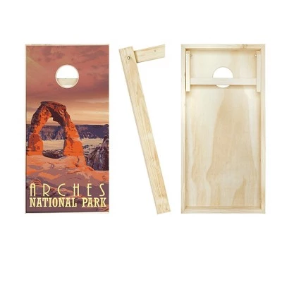 If you are looking to tailgate like a pro or spice up your next backyard party, our Arches Cornhole Boards are perfect for you. In addition to providing endless fun at home, our cornhole game sets are incredibly portable and can be taken virtually anywhere. This means you can easily bring them on your next camping trip, to the big game, to the beach, the lake, or anywhere else you want to play corn hole. You can even set them up and play in a dorm room. All of our games are easy to store, transport and setup, so you can focus on more important things, like playing! Simply take them out of the box and start enjoying them right away. This Cornhole Board Set is made from domestic and imported materials. These boards are Built With Premium 2×4 Frames And 1/2″ Sanded Plywood Tops. They Include a Leg Support Brace for Stability & Durability. These boards are ready for Tournament Play right out of the box! All of our designs are printed with UV Resistant Inks to prevent peeling and fading. Know that you will be getting the highest quality in custom cornhole. We take pride in our work so you can have the ultimate playing experience.