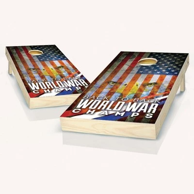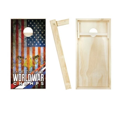 If you are looking to tailgate like a pro or spice up your next backyard party, our Back to Back World War Champs Cornhole Boards are perfect for you. In addition to providing endless fun at home, our cornhole game sets are incredibly portable and can be taken virtually anywhere. This means you can easily bring them on your next camping trip, to the big game, to the beach, the lake, or anywhere else you want to play corn hole. You can even set them up and play in a dorm room. All of our games are easy to store, transport and setup, so you can focus on more important things, like playing! Simply take them out of the box and start enjoying them right away. This Cornhole Board Set is made from domestic and imported materials. These boards are Built With Premium 2×4 Frames And 1/2″ Sanded Plywood Tops. They Include a Leg Support Brace for Stability & Durability. These boards are ready for Tournament Play right out of the box! All of our designs are printed with UV Resistant Inks to prevent peeling and fading. Know that you will be getting the highest quality in custom cornhole. We take pride in our work so you can have the ultimate playing experience.