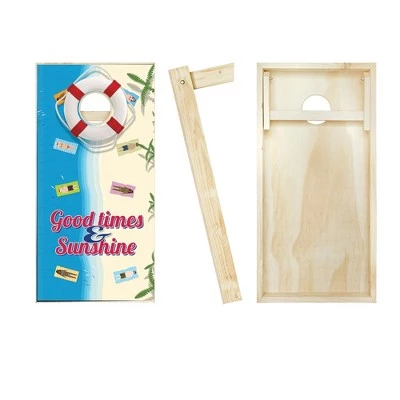 If you are looking to tailgate like a pro or spice up your next backyard party, our Beach Cornhole Boards are perfect for you. In addition to providing endless fun at home, our cornhole game sets are incredibly portable and can be taken virtually anywhere. This means you can easily bring them on your next camping trip, to the big game, to the beach, the lake, or anywhere else you want to play corn hole. You can even set them up and play in a dorm room. All of our games are easy to store, transport and setup, so you can focus on more important things, like playing! Simply take them out of the box and start enjoying them right away. This Cornhole Board Set is made from domestic and imported materials. These boards are Built With Premium 2×4 Frames And 1/2″ Sanded Plywood Tops. They Include a Leg Support Brace for Stability & Durability. These boards are ready for Tournament Play right out of the box! All of our designs are printed with UV Resistant Inks to prevent peeling and fading. Know that you will be getting the highest quality in custom cornhole. We take pride in our work so you can have the ultimate playing experience.