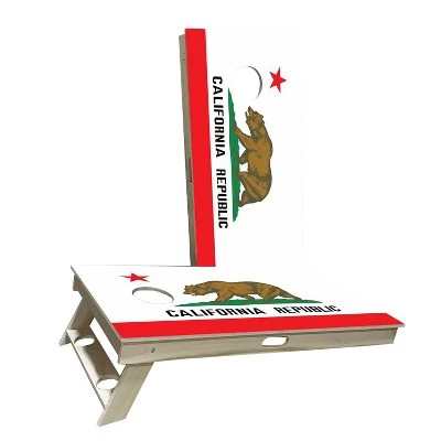 If you are looking to tailgate like a pro or spice up your next backyard party, our California Flag Cornhole Boards are perfect for you. In addition to providing endless fun at home, our cornhole game sets are incredibly portable and can be taken virtually anywhere. This means you can easily bring them on your next camping trip, to the big game, to the beach, the lake, or anywhere else you want to play corn hole. You can even set them up and play in a dorm room. All of our games are easy to store, transport and setup, so you can focus on more important things, like playing! Simply take them out of the box and start enjoying them right away. This Cornhole Board Set is 100% Handmade in America and custom built for each order. You can now choose between 2 different sizes. Our Backyard 2×4 Boards are built with High Quality 5/8″ Birch and feature Pocket Hole Screw Construction. These boards are lighter and more affordable than our Professional option. Our Professional 2×4 Boards are built with the same High Quality 5/8″ Birch and Pocket Hole Screw Construction. Our Pro Boards also include Carrying Handles & Cross-Bar Support with Built-In Cup Holders. These boards are ready for Tournament Play right out of the box! All of our designs are printed with UV Resistant Inks to prevent peeling and fading. Know that you will be getting the highest quality in custom cornhole.