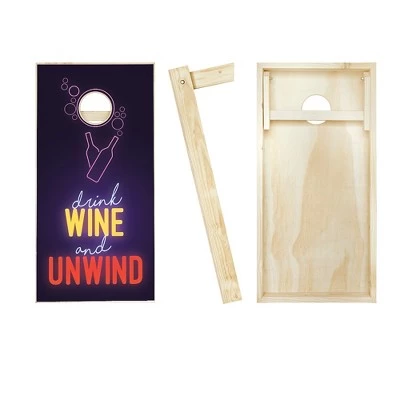 If you are looking to tailgate like a pro or spice up your next backyard party, our Drink Wine And Unwind Cornhole Boards are perfect for you. In addition to providing endless fun at home, our cornhole game sets are incredibly portable and can be taken virtually anywhere. This means you can easily bring them on your next camping trip, to the big game, to the beach, the lake, or anywhere else you want to play corn hole. You can even set them up and play in a dorm room. All of our games are easy to store, transport and setup, so you can focus on more important things, like playing! Simply take them out of the box and start enjoying them right away. This Cornhole Board Set is made from domestic and imported materials. These boards are Built With Premium 2×4 Frames And 1/2″ Sanded Plywood Tops. They Include a Leg Support Brace for Stability & Durability. These boards are ready for Tournament Play right out of the box! All of our designs are printed with UV Resistant Inks to prevent peeling and fading. Know that you will be getting the highest quality in custom cornhole. We take pride in our work so you can have the ultimate playing experience.