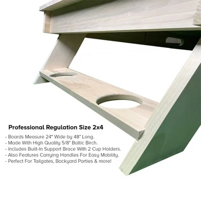 - Professional 2×4 Boards are built with the same High Quality 5/8″ Birch and Pocket Hole Screw Construction. Our Pro Boards also include a Built-In Support Brace with 2 Cup Holders.