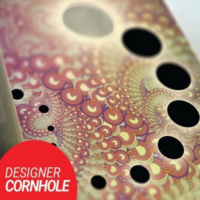 - Perfect, CNC Machine cut, regulation 6” round holes. The design is printed in digital high quality directly onto the playing surface. No more slick, peeling vinyl.