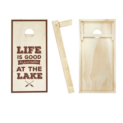 If you are looking to tailgate like a pro or spice up your next backyard party, our Life Is Better At The Lake Rosewood Cornhole Boards are perfect for you. In addition to providing endless fun at home, our cornhole game sets are incredibly portable and can be taken virtually anywhere. This means you can easily bring them on your next camping trip, to the big game, to the beach, the lake, or anywhere else you want to play corn hole. You can even set them up and play in a dorm room. All of our games are easy to store, transport and setup, so you can focus on more important things, like playing! Simply take them out of the box and start enjoying them right away. This Cornhole Board Set is made from domestic and imported materials. These boards are Built With Premium 2×4 Frames And 1/2″ Sanded Plywood Tops. They Include a Leg Support Brace for Stability & Durability. These boards are ready for Tournament Play right out of the box! All of our designs are printed with UV Resistant Inks to prevent peeling and fading. Know that you will be getting the highest quality in custom cornhole. We take pride in our work so you can have the ultimate playing experience.