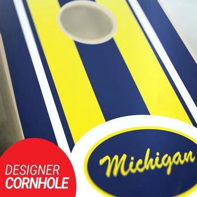 If you are looking to tailgate like a pro or spice up your next backyard party, our Michigan Stripe Cornhole Boards are perfect for you. In addition to providing endless fun at home, our cornhole game sets are incredibly portable and can be taken virtually anywhere. This means you can easily bring them on your next camping trip, to the big game, to the beach, the lake, or anywhere else you want to play corn hole. You can even set them up and play in a dorm room. All of our games are easy to store, transport and setup, so you can focus on more important things, like playing! Simply take them out of the box and start enjoying them right away. This Cornhole Board Set is made from domestic and imported materials. These boards are Built With Premium 2×4 Frames And 1/2″ Sanded Plywood Tops. They Include a Leg Support Brace for Stability & Durability. These boards are ready for Tournament Play right out of the box! All of our designs are printed with UV Resistant Inks to prevent peeling and fading. Know that you will be getting the highest quality in custom cornhole. We take pride in our work so you can have the ultimate playing experience.