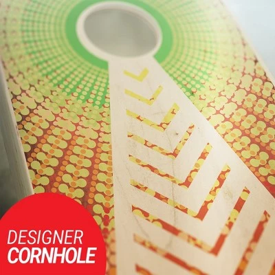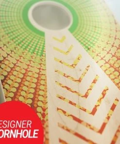 - Perfect, CNC Machine cut, regulation 6” round holes. The design is printed in digital high quality directly onto the playing surface. No more slick, peeling vinyl.