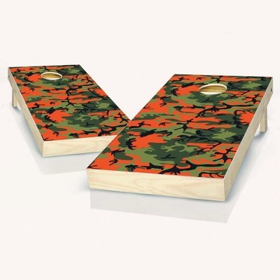 If you are looking to tailgate like a pro or spice up your next backyard party, our Orange Camo Cornhole Boards are perfect for you. In addition to providing endless fun at home, our cornhole game sets are incredibly portable and can be taken virtually anywhere. This means you can easily bring them on your next camping trip, to the big game, to the beach, the lake, or anywhere else you want to play corn hole. You can even set them up and play in a dorm room. All of our games are easy to store, transport and setup, so you can focus on more important things, like playing! Simply take them out of the box and start enjoying them right away. This Cornhole Board Set is made from domestic and imported materials. These boards are Built With Premium 2×4 Frames And 1/2″ Sanded Plywood Tops. They Include a Leg Support Brace for Stability & Durability. These boards are ready for Tournament Play right out of the box! All of our designs are printed with UV Resistant Inks to prevent peeling and fading. Know that you will be getting the highest quality in custom cornhole. We take pride in our work so you can have the ultimate playing experience.