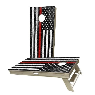 If you are looking to tailgate like a pro or spice up your next backyard party, our Rustic USA Thin Red Line Cornhole Boards are perfect for you. In addition to providing endless fun at home, our cornhole game sets are incredibly portable and can be taken virtually anywhere. This means you can easily bring them on your next camping trip, to the big game, to the beach, the lake, or anywhere else you want to play corn hole. You can even set them up and play in a dorm room. All of our games are easy to store, transport and setup, so you can focus on more important things, like playing! Simply take them out of the box and start enjoying them right away. This Cornhole Board Set is 100% Handmade in America and custom built for each order. You can now choose between 2 different sizes. Our Backyard 2×4 Boards are built with High Quality 5/8″ Birch and feature Pocket Hole Screw Construction. These boards are lighter and more affordable than our Professional option. Our Professional 2×4 Boards are built with the same High Quality 5/8″ Birch and Pocket Hole Screw Construction. Our Pro Boards also include Carrying Handles & Cross-Bar Support with Built-In Cup Holders. These boards are ready for Tournament Play right out of the box! All of our designs are printed with UV Resistant Inks to prevent peeling and fading. Know that you will be getting the highest quality in custom cornhole.