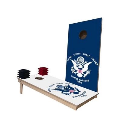 If you are looking to tailgate like a pro or spice up your next backyard party, our US Coast Guard Cornhole Boards are perfect for you. In addition to providing endless fun at home, our cornhole game sets are incredibly portable and can be taken virtually anywhere. This means you can easily bring them on your next camping trip, to the big game, to the beach, the lake, or anywhere else you want to play corn hole. You can even set them up and play in a dorm room. All of our games are easy to store, transport and setup, so you can focus on more important things, like playing! Simply take them out of the box and start enjoying them right away. This Cornhole Board Set is 100% Handmade in America and custom built for each order. You can now choose between 2 different sizes. Our Backyard 2×4 Boards are built with High Quality 5/8″ Birch and feature Pocket Hole Screw Construction. These boards are lighter and more affordable than our Professional option. Our Professional 2×4 Boards are built with the same High Quality 5/8″ Birch and Pocket Hole Screw Construction. Our Pro Boards also include Carrying Handles & Cross-Bar Support with Built-In Cup Holders. These boards are ready for Tournament Play right out of the box! All of our designs are printed with UV Resistant Inks to prevent peeling and fading. Know that you will be getting the highest quality in custom cornhole.