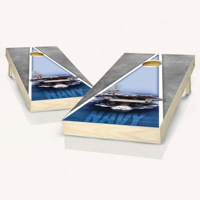 If you are looking to tailgate like a pro or spice up your next backyard party, our US Navy Cornhole Boards are perfect for you. In addition to providing endless fun at home, our cornhole game sets are incredibly portable and can be taken virtually anywhere. This means you can easily bring them on your next camping trip, to the big game, to the beach, the lake, or anywhere else you want to play corn hole. You can even set them up and play in a dorm room. All of our games are easy to store, transport and setup, so you can focus on more important things, like playing! Simply take them out of the box and start enjoying them right away. This Cornhole Board Set is made from domestic and imported materials. These boards are Built With Premium 2×4 Frames And 1/2″ Sanded Plywood Tops. They Include a Leg Support Brace for Stability & Durability. These boards are ready for Tournament Play right out of the box! All of our designs are printed with UV Resistant Inks to prevent peeling and fading. Know that you will be getting the highest quality in custom cornhole. We take pride in our work so you can have the ultimate playing experience.