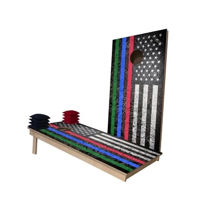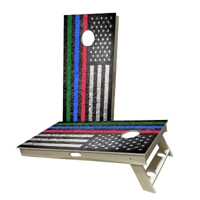 If you are looking to tailgate like a pro or spice up your next backyard party, our USA Red Blue & Green Line Cornhole Boards are perfect for you. In addition to providing endless fun at home, our cornhole game sets are incredibly portable and can be taken virtually anywhere. This means you can easily bring them on your next camping trip, to the big game, to the beach, the lake, or anywhere else you want to play corn hole. You can even set them up and play in a dorm room. All of our games are easy to store, transport and setup, so you can focus on more important things, like playing! Simply take them out of the box and start enjoying them right away. This Cornhole Board Set is 100% Handmade in America and custom built for each order. You can now choose between 2 different sizes. Our Backyard 2×4 Boards are built with High Quality 5/8″ Birch and feature Pocket Hole Screw Construction. These boards are lighter and more affordable than our Professional option. Our Professional 2×4 Boards are built with the same High Quality 5/8″ Birch and Pocket Hole Screw Construction. Our Pro Boards also include Carrying Handles & Cross-Bar Support with Built-In Cup Holders. These boards are ready for Tournament Play right out of the box! All of our designs are printed with UV Resistant Inks to prevent peeling and fading. Know that you will be getting the highest quality in custom cornhole.