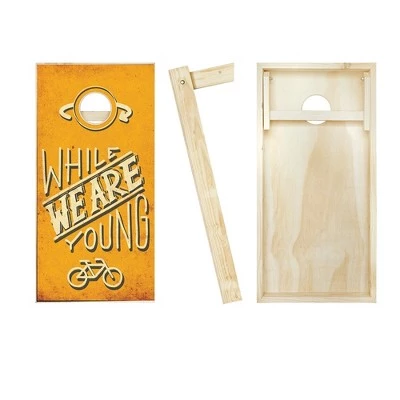 If you are looking to tailgate like a pro or spice up your next backyard party, our While We Are Young Cornhole Boards are perfect for you. In addition to providing endless fun at home, our cornhole game sets are incredibly portable and can be taken virtually anywhere. This means you can easily bring them on your next camping trip, to the big game, to the beach, the lake, or anywhere else you want to play corn hole. You can even set them up and play in a dorm room. All of our games are easy to store, transport and setup, so you can focus on more important things, like playing! Simply take them out of the box and start enjoying them right away. This Cornhole Board Set is made from domestic and imported materials. These boards are Built With Premium 2×4 Frames And 1/2″ Sanded Plywood Tops. They Include a Leg Support Brace for Stability & Durability. These boards are ready for Tournament Play right out of the box! All of our designs are printed with UV Resistant Inks to prevent peeling and fading. Know that you will be getting the highest quality in custom cornhole. We take pride in our work so you can have the ultimate playing experience.