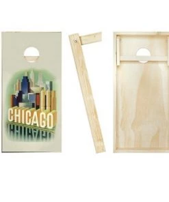 Skip’s Garage Chicago Poster Cornhole Board Set, Includes 2 Boards, 8 Bags + Optional Accessories