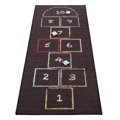- Enjoy a classic game of hopscotch with your little one inside or out with this fun play rug