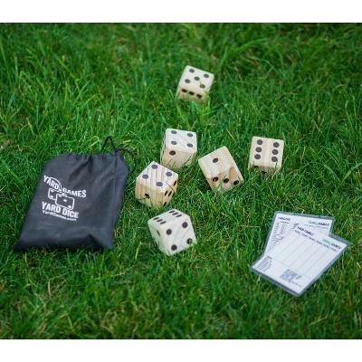 Alongside your family and friends, bring the fun to any existing dice game with YardGames Giant Outdoor Indoor Wooden Dice Set. This set consists of 6 pinewood dice that are individually hand-sanded for immediate smooth playability. Each dot on the 2.5-inch dice is heat-branded and burned for deep visibility. You also receive laminated scorecards for both Yardzee and Yard Farkle with the addition of instructions for multiple other dice games.With this giant dice set, you are provided with a high-quality fiber drawstring bag for easy storage and transportation. You can easily pack this fun party game up and take it to any outdoor or indoor event such as parties, barbeques, tailgates, group events, and so much more. People of all ages can play by rolling the dice 1 by 1 or all at the same time. YardGames Giant Wooden Dice Set will add all the enjoyment and excitement to game nights with your favorite people! . . . . . .