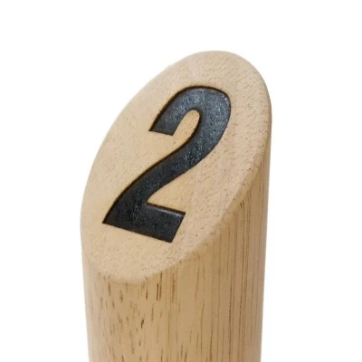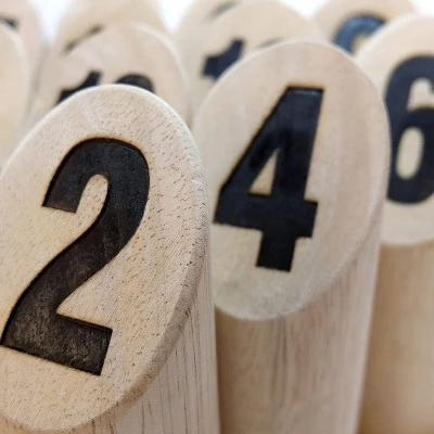 - Skittles are made from solid hardwood with blackened numbers burned into the faces